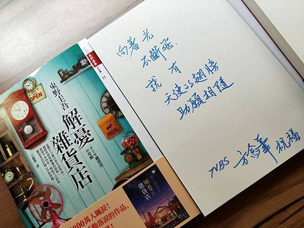 東野圭吾著名小說改編的「解憂雜貨店」在台灣上映,票房表現相當出色,片中善的循環造成影響力,更讓許多觀眾感動落淚,好評不斷。由於電影裡的故事都是從一家育幼院所引發,所以台灣發行此片的公司特別發起送原著到育幼院的活動,獲得上百藝人及主播的熱情響應,紛紛簽名並留下鼓勵的字句,希望育幼院的小朋友也能得到正面的力量,讓社會更充滿互助的溫暖。