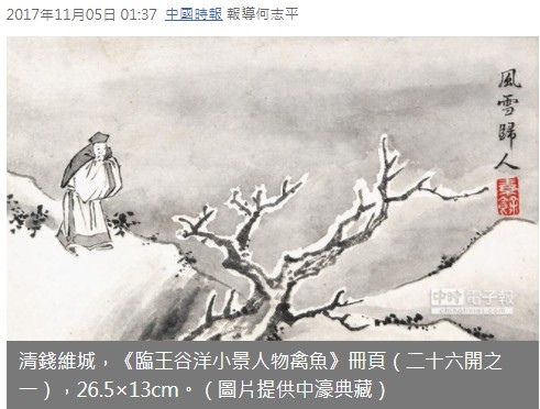 清錢維城,《臨王谷洋小景人物禽魚》冊頁(二十六開之一),26.5×13cm。(圖片提供中濠典藏)