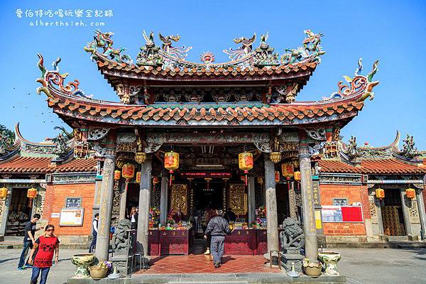 佛寺前拜亭上方,有一罕見的「鬥八藻井」,其作法是在正方形的壽樑上搭放8角形枋材,先用24組斗栱層層內挑(由內向上延伸),3挑後轉成16組斗栱,再3挑後到網心,最後以八卦符做中心收頭,斗栱均勻分布在樑枋上,支挑著伸出的屋簷。特別是下層第二挑8個轉角,使用「回頭看」的螭虎栱,是清光緒年間以後被漳州派木匠常用於栱頭的作法。