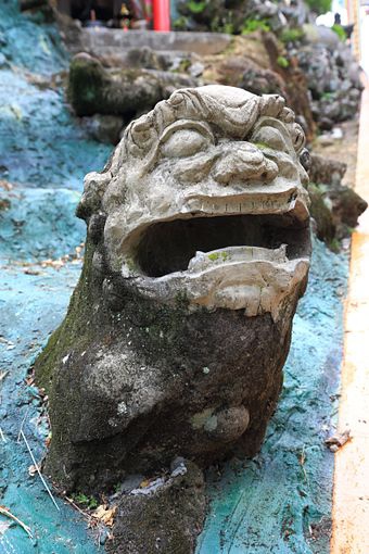 置於蓮座山觀音寺入口石階旁的咸豐年間古獅,造型古樸、雕琢有力,是日治時期重建時移至此處迎接香客。