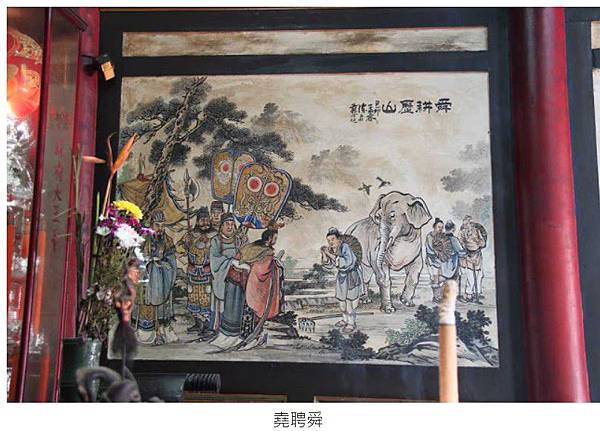 舜耕歷山:傳說舜為孝子,從不忤逆繼折磨,在歷山時,有大象幫忙耕田,雀鳥代為播種,於是堯親往歷山聘請舜,民間所作雕繪故事亦皆以此為題。