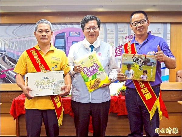 〔記者陳昀/桃園報導〕行政院農業委員會昨天揭曉「台灣稻米達人冠軍賽」成績,桃園市勇奪僅有的二個冠軍成為全國雙冠王,由世代務農的呂家堂兄弟呂理文、呂理陽分別拿下好米組、有機米組冠軍,下午市長鄭文燦立即在市府宣布成果,開心表示將頒出共七百萬元獎金給農友及輔導農會。