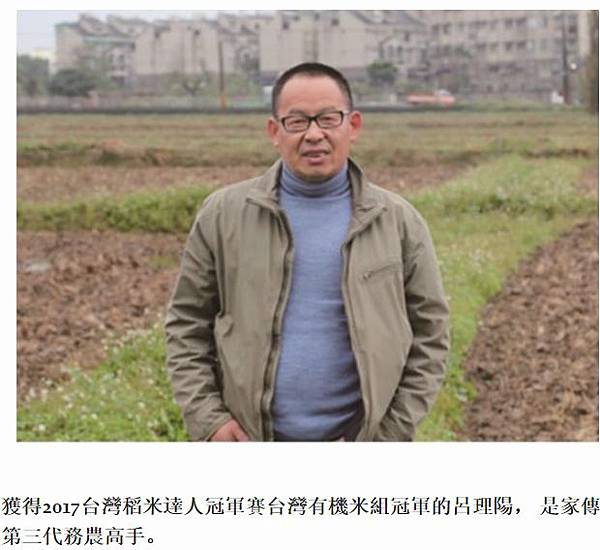 獲得2017台灣稻米達人冠軍賽台灣有機米組冠軍的呂理陽, 是家傳第三代務農高手。
