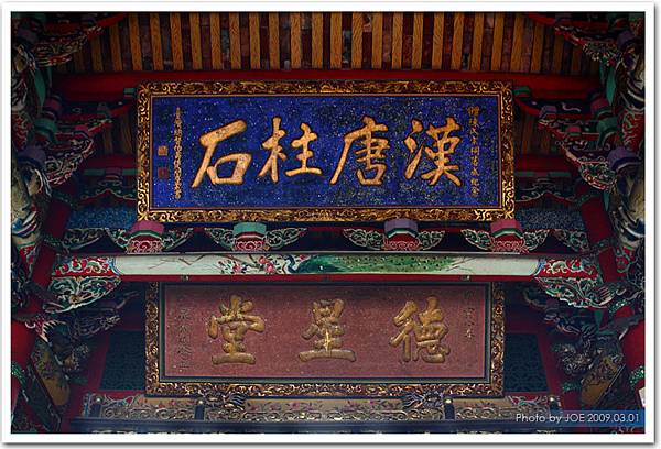 前殿大門這一幅對聯,其掌故很有意思。按寧夏路過去是山地平埔族雞母萃社之故地,日據時代把雞母萃改為奎府,故聯句上才有「奎府聚五星」,至於「漳州開二閣」等文詞,當指唐朝開拓漳州的陳元光。