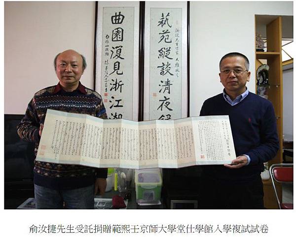 昨天下午,湖北省社科院研究員俞汝捷在家中接待了北大校史館、檔案館館長馬建鈞,將范熙壬先生1902年考取京師大學堂獲得第一名的“作文試卷”,捐贈給北京大學。