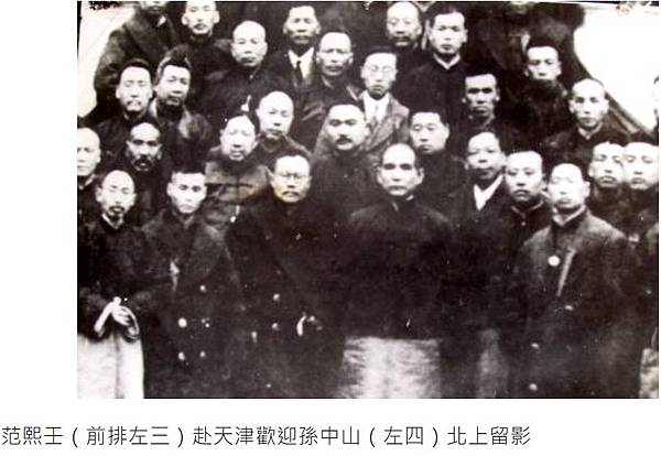 范熙壬作為歡迎代表與北上天津的孫中山合影(民國十三年,1924年)