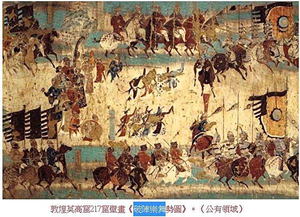 【秦王破陣樂】即《秦王破陣舞》,又名《七德舞》/敦煌莫高窟217窟壁畫《破陣樂舞勢圖》/ 《秦王破陣樂》即《秦王破陣舞》,是唐朝最著名宮廷樂舞,最初用於宴享,後用於祭祀,屬武舞類,與文舞相對。貞觀元年(627年)正月初三,宴群臣,奏《秦王破陣樂》,這是此曲第一次在這樣莊嚴、隆重的場合中演奏。據說這個歌舞使百官看了都激動不已。/《秦王破陣樂》真實的體現了盛世唐朝的文治武功,是當時最為著名的經典樂舞 @ 姜朝鳳宗族 :: 痞客邦 PIXNET :: - https://goo.gl/bg7DD7