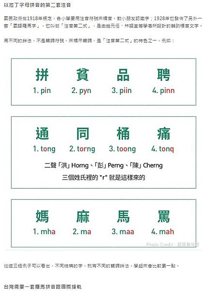 二、「只有中文用注音,忽略其他台灣語言都用羅馬字母」(註)