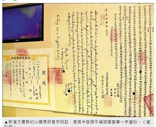 「台語」並不是沒有文字書寫系統 兩百多年前就有羅馬拼音「白話字」 西拉雅平埔族人「新港文」 第一個擁有文字的台灣原住民〔2015-02-25〕