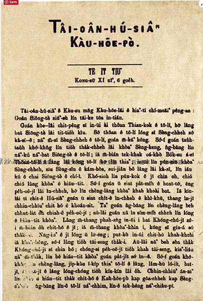 「台語」並不是沒有文字書寫系統 兩百多年前就有羅馬拼音「白話字」