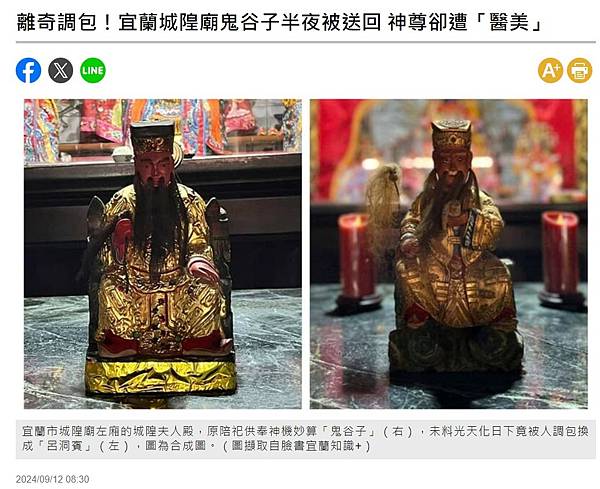 離奇調包!宜蘭城隍廟鬼谷子半夜被送回 神尊卻遭「醫美」 - 蒐奇 - 自由時報電子報