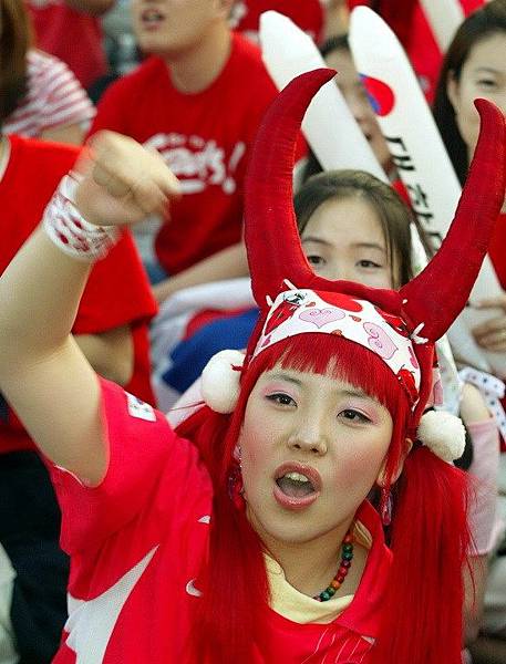 據了解,韓國不僅出書追溯蚩尤為其祖宗,蚩尤圖騰產品還遍及各方,“蚩尤是韓國人”的觀點已深入民心。據媒體報導,2002年世界杯大賽韓日兩隊比賽時,韓國足球啦啦隊“紅魔”就以紅色鬼臉為像徵的戰神蚩尤為其勝戰的法寶。