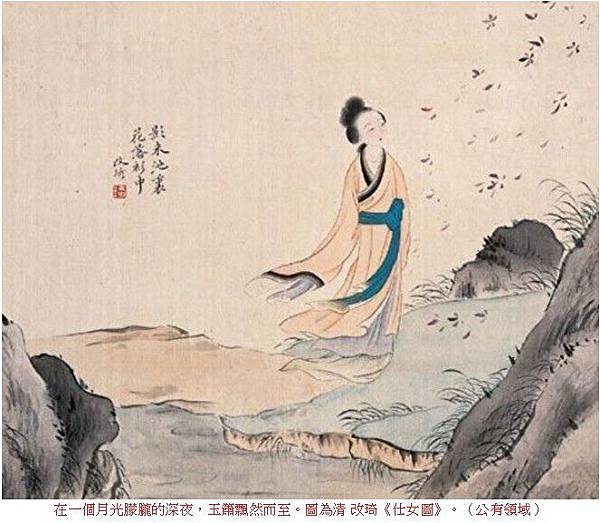 在一個月光朦朧的深夜,玉簫飄然而至。圖為清 改琦《仕女圖》。(公有領域)