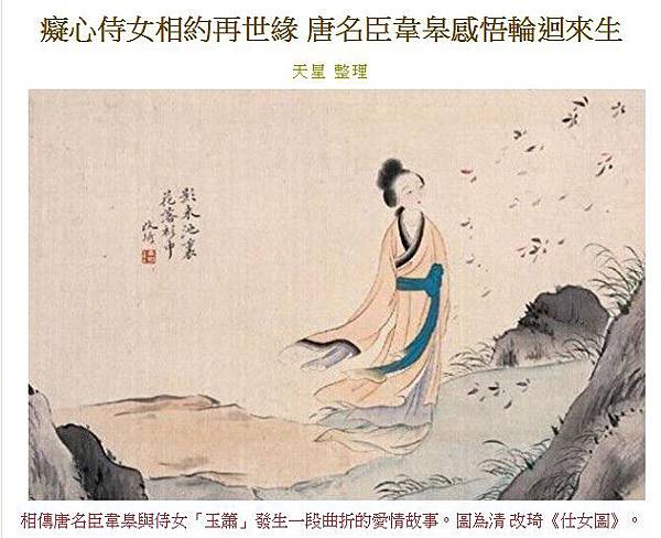 癡心侍女相約再世緣 唐名臣韋皋感悟輪迴來生