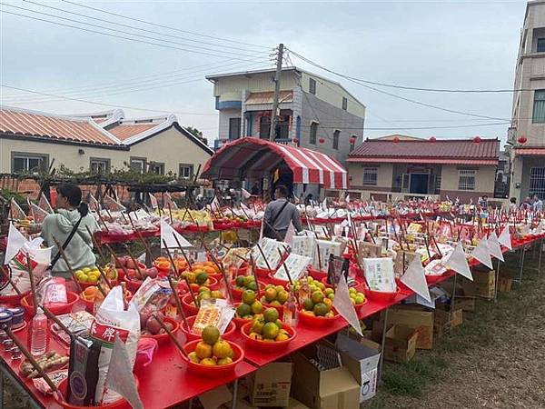 ▼▲蕭府大帝殿建廟36週年,28日全庄大拜拜,貢桌高達1350桌。(圖/翻攝自蕭府大帝殿臉書)