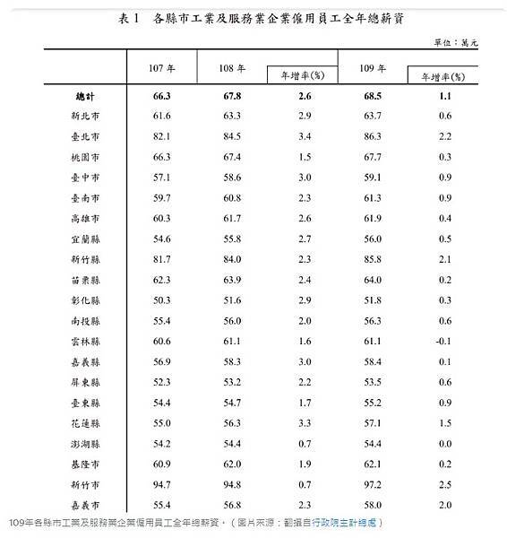 中位數收入排名 連江最富、彰化最窮