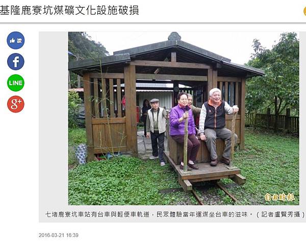 分享基隆鹿寮坑煤礦文化設施破損到Facebook 分享基隆鹿寮坑煤礦文化設施破損到Line 分享基隆鹿寮坑煤礦文化設施破損到Google+