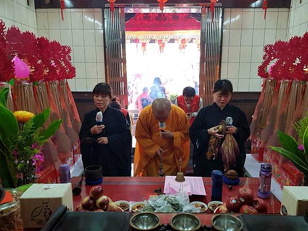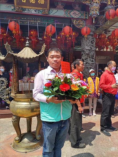 ▲石母宮除了奉拜石母娘娘外,也是在地居民群聚的好地方。曾美鴻女士就是利用時間,來插花佈置會所。(圖/記者宋汝夔攝,2018.02.13) 石母宮的總務楊國豐指出,石母宮除了奉拜石母娘娘外,也是在地居民群聚的好地方。目前美濃當地的民眾只要是家中有襁褓難養,家長皆會抱往石母宮前求石母娘娘庇佑,甚至有人把子女過繼給石母娘娘當契子女,呼娘、呼母,祈求石母娘娘護佑,無不應驗,這也正是「妙養嬰兒」4個字,高高書寫於橫樑的實質意義。