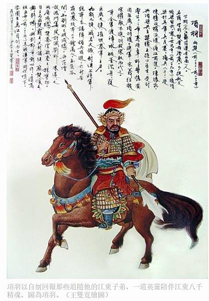 項羽以自刎回報那些追隨他的江東子弟,一道英靈陪伴江東八千精魂,圖為項羽。(王雙寬繪圖)