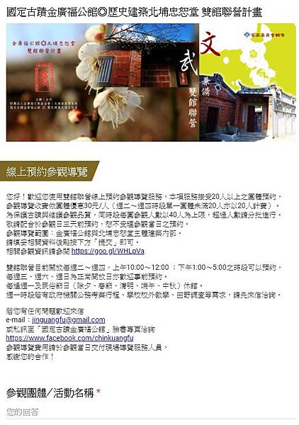 「國定古蹟金廣福公館」臉書專頁洽詢