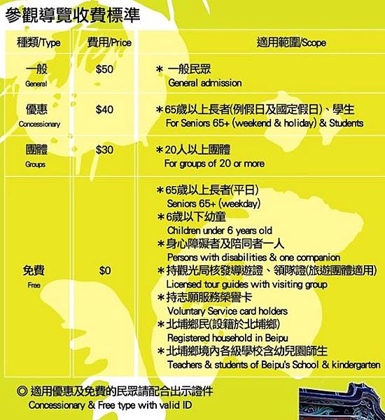 參觀導覽收費依團體優惠30元/人(週二~週四時段單一團體未滿20人亦以20人計費)。