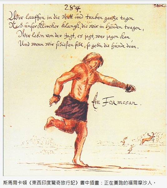 斯馬爾卡頓《東西印度驚奇旅行記》書中插畫:正在賽跑的福爾摩沙人。
