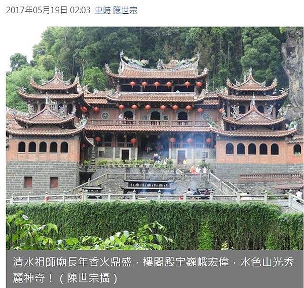 清水祖師廟長年香火鼎盛,樓閣殿宇巍峨宏偉,水色山光秀麗神奇!(陳世宗攝)