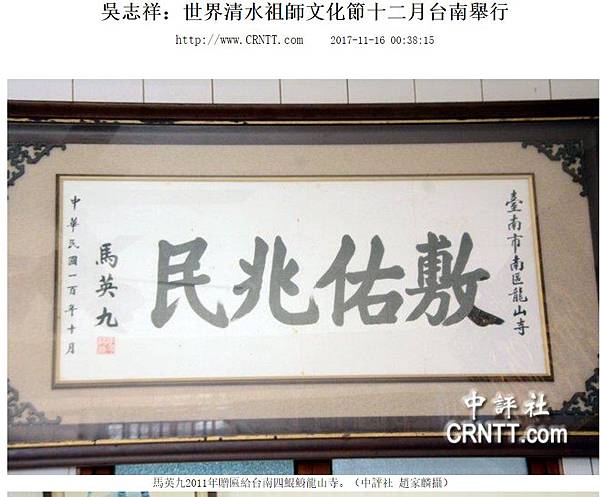 吳志祥:世界清水祖師文化節十二月台南舉行