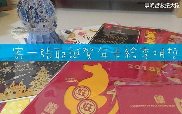 台灣NGO組織工作者李明哲,今年3月19日被中國政府關押迄今已281日,超過9個月,9月11日在中國湖南岳陽法庭開庭審判,11月28日遭判5年徒刑,但家屬至今仍未收到判決書,中國也未曾公布或使家屬得知執行地點,今天是聖誕節,過年也快到了,李明哲救援大隊將上午在立法院舉辦「寄一張耶誕賀年卡給李明哲」行動,現場將準備聖誕卡、新年卡給大家填寫。