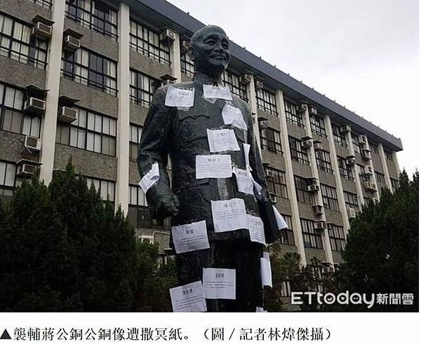 中央機關所轄威權象徵數量,以國防部、教育部、退輔會三部會處置進度緩慢,各大營區、學校充斥蔣公銅像。(記者陳鈺馥翻攝)