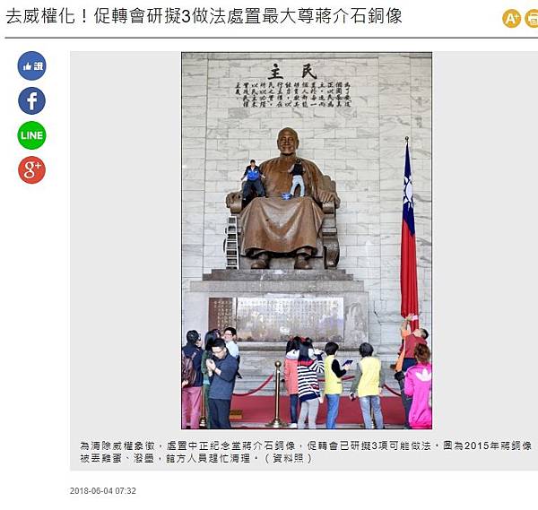 分享去威權化!促轉會研擬3做法處置最大尊蔣介石銅像到Facebook 分享去威權化!促轉會研擬3做法處置最大尊蔣介石銅像到Line 分享去威權化!促轉會研擬3做法處置最大尊蔣介石銅像到Google+