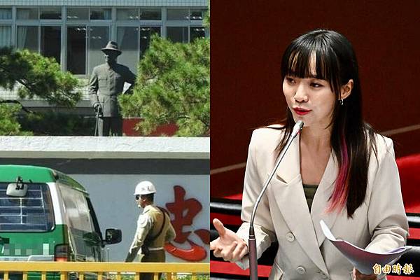 立法委員黃捷(右)在立法院質詢指出,轉型正義的工程當中移除蔣介石銅像(左)的進度,全國竟然不到兩成。(資料照)