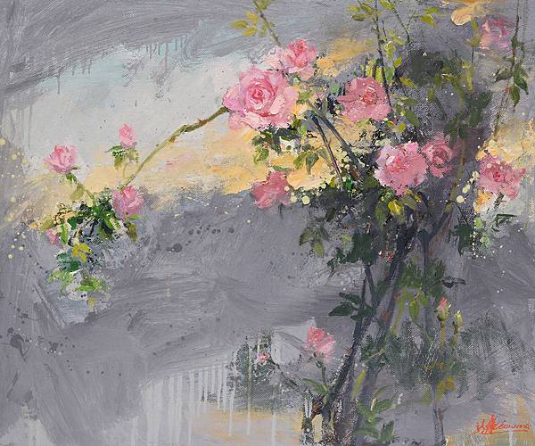 黃進龍說,很多人乍看他的作品還以為是水墨畫,仔細一瞧才發現是油畫;就像個展名稱「書寫.逸趣」,他希望完成的是以西方繪畫基底與東方水墨串連,表達他內心想要傳達的中國特質,藉由中國式「書寫情懷」來表現西方繪畫的「造型色彩」。