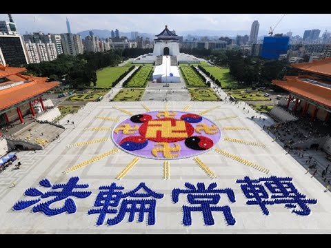 2014年11月8日上午,部分來自臺灣、香港、韓國、日本、新加坡、越南、美洲、歐洲等地的近6千名法輪功學員在中正紀念堂前排出從未有過的「佛光普照 禮義圓明」超大型圖像。