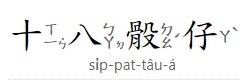 因此,所得點數最大為12點,稱為「十八」(si̍p-pat);最小為3點,稱為「扁膣」(發音類似BG)。