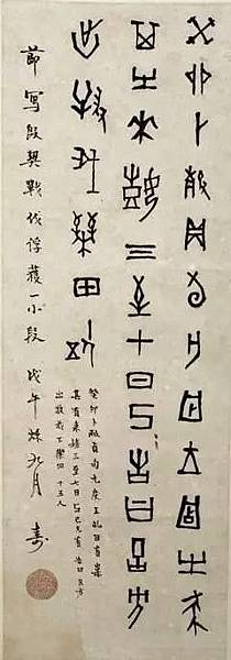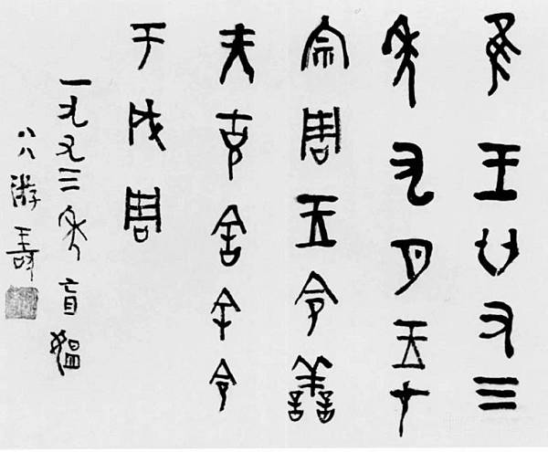 到進入大學,由於我有一點古文字家學基礎,對新出青銅時代文獻感興趣,多選修金文、甲骨、音韻課,也隨時觀胡小石師的用筆。這是我的學書過程。由於從幼不好好寫字,我的字是生澀的,不是嫻熟的,但我從來未沾染流俗劣帖,而且執筆是正法,五指全用力,掌虛而直、腕平,大字懸肘,可以說得是書法正宗。