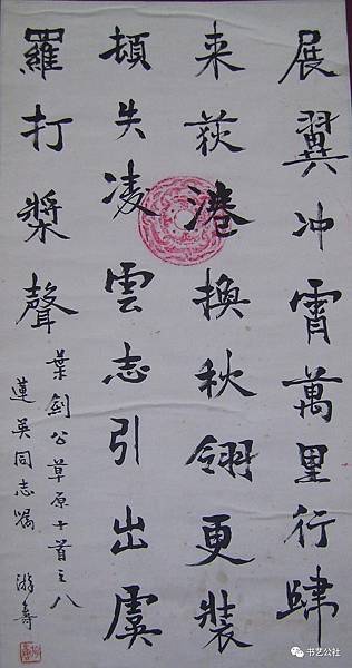 我呢?是什麼都不成的書寫,幼年沒有規矩的訓練,我的學書過程是不足道,更不上法了。由於自己學習專業,便注意書法,經過多次改定。情性所好,初學顏書,後寫漢隸,好看崢嶸之筆。有家學的底子,後來受師友薰陶,略有所悟。中年以後,涉世稍廣。由於多病,學書一是養病,二是養性。摒去萬慮,集中精神,懸臂運腕,全部精神凝聚於五個指端,緊握筆管。這就我寫字的過程,沒有什麼鴻寶、秘訣等欺世宏論。