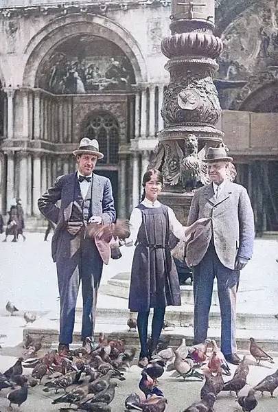 林徽因的這張在歐洲喂鴿子的照片深深被驚艷到了!難怪徐志摩為之傾倒,照片拍攝于1920年,林徽因16歲那年,當時她隨父親林長民去歐洲游學,并在羅馬圣馬可廣場和當地友人拍下了這張合影。
