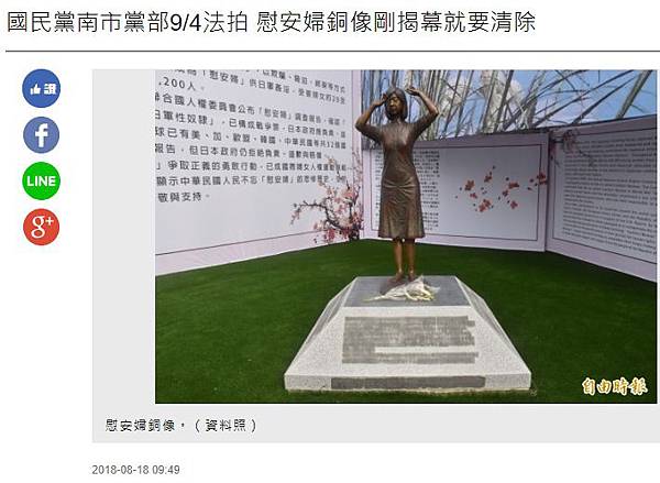 國民黨南市黨部9/4法拍 慰安婦銅像剛揭幕就要清除 - 政治 - 自由時報電子報 - https://goo.gl/c1xY4V