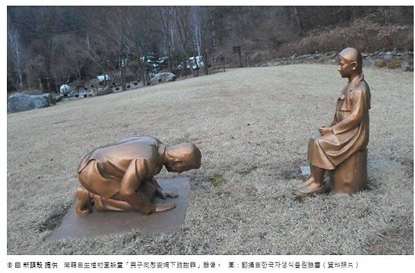 2021/9/2 南韓自生植物園設置「男子向慰安婦下跪謝罪」雕像。 圖:翻攝自한국자생식물원臉書(資料照片)
