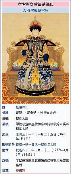 清世宗:孝聖憲皇后(乾隆帝生母,追尊為孝聖憲皇后)