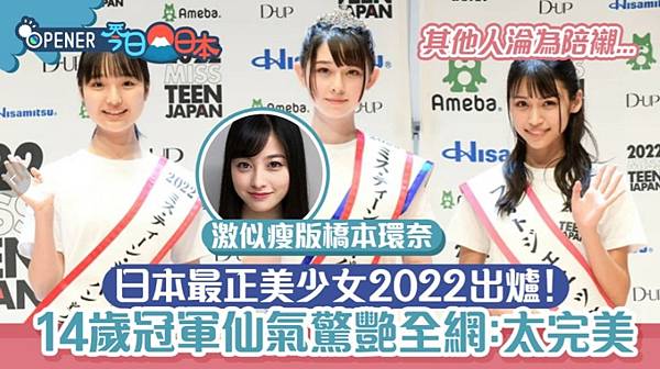日本每逢踏入年末秋季,都會有多個大型全國選美比賽相繼舉行,而著名的美少女選拔大賽「MISS TEEN JAPAN 2022」便於早前(10月10日)進行決賽,選出新一屆全日本最正美少女。最後冠軍由來自北海道的14歲少女奪得,賽事當日已經有網民熱烈討論她仙氣十足的眼值,她擁有白皙如雪的肌膚、淺啡色瞳孔和長腿,被封為「瘦版橋本環奈」,其他參賽者更慘被形容做「配襯」。原文網址: 奈良鹿失蹤過百隻!馬路暴走闖民居食草 專家揭幼鹿神秘消失真相 | 香港01 https://www.hk01.com/sns/article/690294