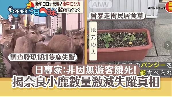 《日本產經新聞》報導,受到這波「COVID-19」(2019年新型冠狀病毒疾病,簡稱武漢肺炎)疫情影響,奈良鹿也出現2種不同情況。