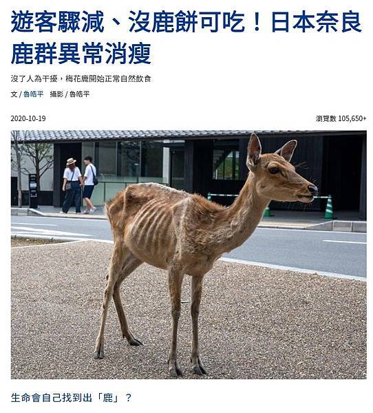 遊客驟減、沒鹿餅可吃!日本奈良鹿群異常消瘦 | 魯皓平 | 遠見雜誌 https://bit.ly/3lOpH6Y