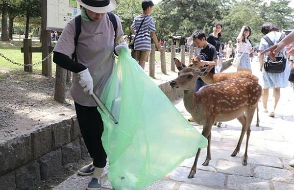 更令人擔憂的是,奈良鹿會誤吃人類製造的垃圾,因該地區的酒吧多在午夜前就會關閉,許多人在車站前的便利商店買酒直接在路邊喝,鹿會在半夜離開公園尋找食物,常常誤吃無法消化的空罐頭和零食包裝,導致營養不良、食物中毒致死。