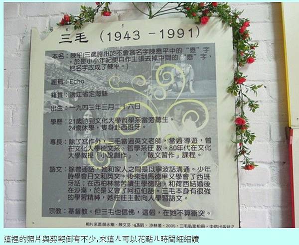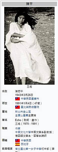 三毛,本名陳懋平,後改陳平,洋名Echo(艾珂),筆名三毛