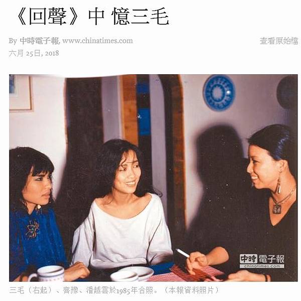 即使沒有看過三毛的書,也必定聽過齊豫這首《橄欖樹》。(現在大家應該是聽孫燕姿的版本吧?)