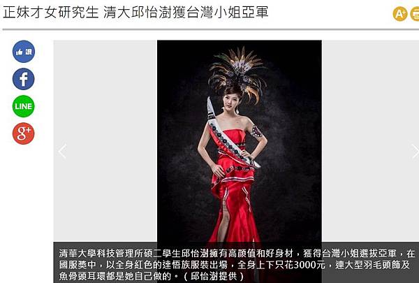 分享正妹才女研究生 清大邱怡澍獲台灣小姐亞軍到Facebook 分享正妹才女研究生 清大邱怡澍獲台灣小姐亞軍到Line 分享正妹才女研究生 清大邱怡澍獲台灣小姐亞軍到Google+