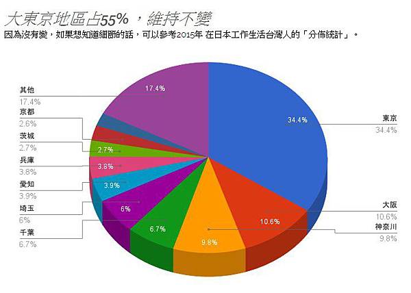 以區域分布來看,台灣人還是鍾愛關東的首都,其次是首都圈三縣(千葉,琦玉,神奈川),接著才是關西地區。