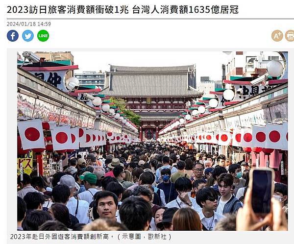 2023訪日旅客消費額衝破1兆 台灣人消費額1635億居冠 - 自由財經